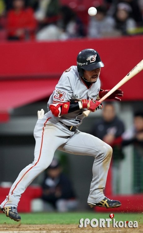 29일 오후 광주-기아챔피언스필드에서 열린 ‘2015 타이어뱅크 KBO 리그 프로야구’ KIA 타이거즈와 한화 이글스의 경기에서 한화 1번 이용규가 2회초 1사 2루 타석 때 KIA 험버의 투구에 몸을 맞고 있다.