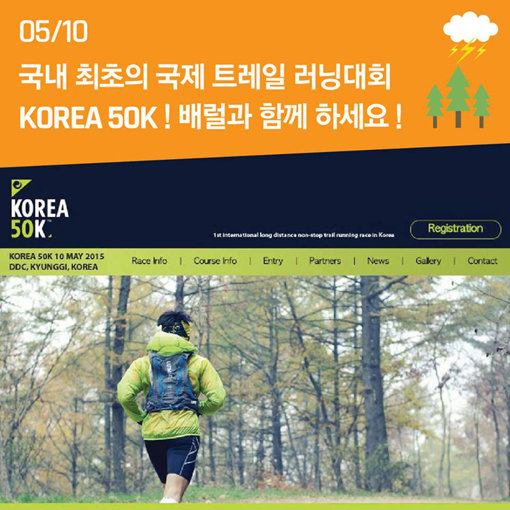 워터 액션 스포츠웨어 브랜드 배럴(www.getbarrel.com)이 5월10일 경기도 동두천시에서 열리는 국제 트레일러닝 대회 ‘Korea 50K’의 메인 스폰서를 맡았다. 아울러 대회에 참가할 배럴 어반 우먼 팀(Barrel Urban Woman Team) 선수를 모집한다.