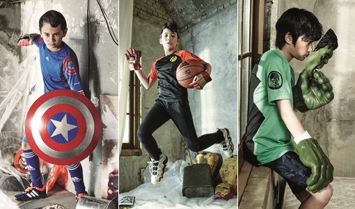 스포츠 브랜드 아디다스는 어벤져스 히어로를 특징으로 하는 기능성 스포츠웨어 ‘아디다스 키즈 어벤져스’ 제품을 출시했다. 이번 신제품은 영화 ‘어벤져스2’의 개봉에 맞춰 출시한 콜라보 제품으로, 아이언맨, 캡틴아메리카, 헐크, 스파이더맨 등 다양한 캐릭터 디자인으로 나왔다. 토들러 라인은 캐릭터의 이미지를 담은 반팔 티셔츠와 반바지로 귀여운 이미지를 강조했고, 주니어 라인은 각 영웅들의 특징을 세련된 디자인과 컬러로 표현했다.