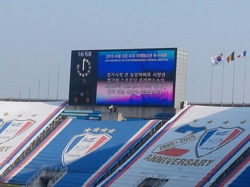 이에 수원 JS컵 주최 측은 1일 오후 5시15분부터 수원월드컵경기장에서 열리는 한국 벨기에의 ‘2015 수원 JS컵’ 2차전 경기에 앞서 애도 묵념을 진행한다고 전했다.