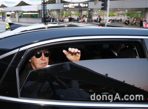 영국의 록밴드 비틀스의 폴 매카트니가 1일 오후 김포공항을 통해 입국해 포즈를 취하고 있다. 폴 매카트니는 지난해 건강악화로 지난해 공연을 취소한바 있다.