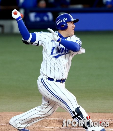 1일 오후 대구 시민야구장에서 열린 ‘2015 타이어뱅크 KBO 리그 프로야구‘ 삼성 라이온즈 대 두산 베어스 경기 2회말 2사 2루에서 삼성 최형우가 투런홈런을 치고 있다.