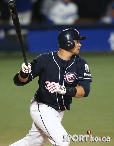1일 오후 대구 시민야구장에서 열린 ‘2015 타이어뱅크 KBO 리그 프로야구’ 삼성 라이온즈 대 두산 베어스 경기 7회초 무사 1루에서 두산 김재환이 1타점 2루타를 치고 있다.
