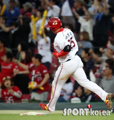 2일 오후 광주-기아챔피언스필드에서 열린 ‘2015 타이어뱅크 KBO 리그 프로야구’ KIA 타이거즈와 SK 와이번스의 경기에서 KIA 5번 이범호가 6회말 1사 후 중월 솔로홈런을 치고 베이스를 돌고 있다.