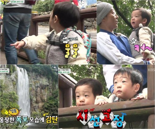 이날 서언-서준은 처음 보는 '엉또 폭포'에 신기함 가득한 눈으로 감탄사를 연발해 시청자들을 엄마 미소를 짓게 만들었다. 특히 서언-서준은 산길에 있는 시냇물을 보며 아빠를 향해 “물”, “물”이라며 신기해 하더니 더 큰 물이 흐르는 폭포를 향해 “물~ 커~”라며 탄성을 질러 아빠 이휘재를 웃음짓게 만들었다. 지금껏 쌍둥이가 만난 물 중에 제일 큰 물이 될 “엉또 폭포”와 만난 서언-서준은 난간 사이로 고개를 빼꼼히 내밀며 넋이 나간 표정을 지었고, 처음 보는 폭포가 신기한 듯 휘둥그래 눈을 뜨고 쉽사리 눈길을 돌리지 못하는 모습으로 웃음을 유발했다.