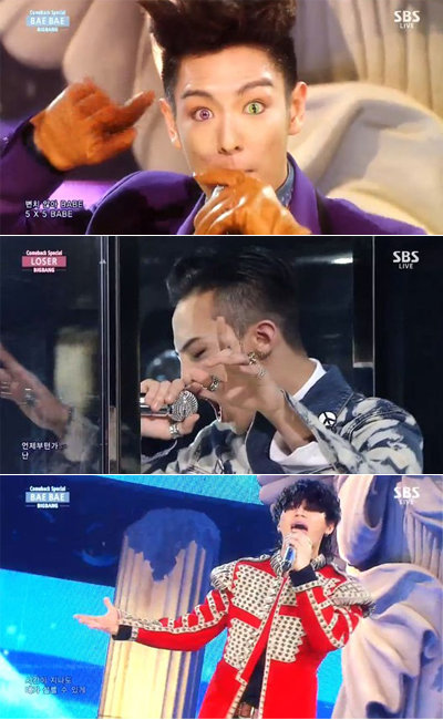 이날 방송에서 빅뱅은 신곡 ‘배배(BAE BAE)’와 ‘루저(Loser)’를 부르며 시청자들의 이목을 사로잡았다.