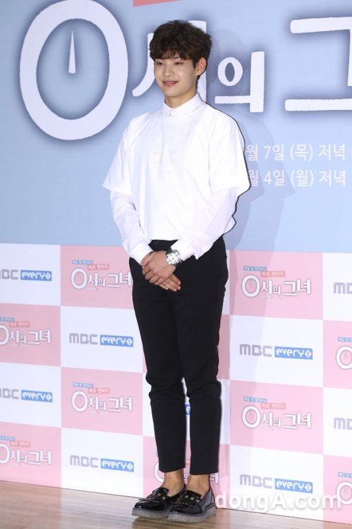 탑독의 멤버 상도가 4일 오후 경기도 고양시 MBC드림센터에서 열린 MBC플러스 드라마 ‘0시의 그녀’ 제작발표회에서 포토타임을 하고 있다.