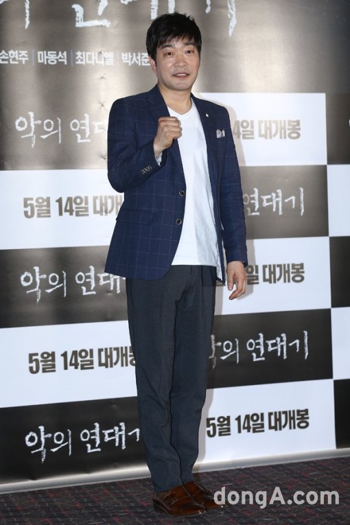 배우 손현주가 6일 오후 서울시 성동구 왕십리CGV에서 열린 영화 ‘악의 연대기’ 언론시사회에서 포토타임을 하고 있다.