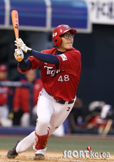 6일 오후 창원 마산야구장에서 열린 ‘2015 타이어뱅크 KBO 리그’ NC 다이노스와 KIA 타이거즈의 경기 2회초 1사에서 한화서 KIA로 이적한 노수광이 2루타를 치고 있다.