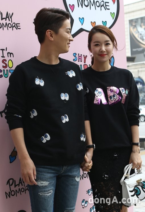 배우 인교진 소이현 부부가 7일 오후 서울시 강남구 비이커 매장에서 열린 플레이노모어 첫번째 프레젠테이션 ‘샤이걸’행사에서 포토타임을 하고 있다.