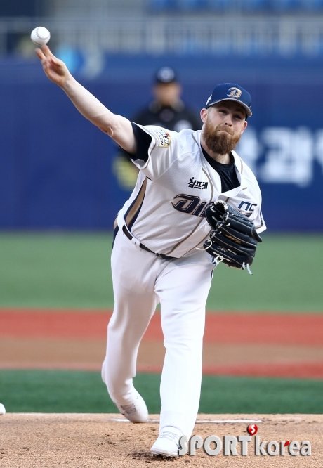 7일 오후 창원 마산야구장에서 열린 ‘2015 타이어뱅크 KBO 리그’ NC 다이노스와 KIA 타이거즈의 경기 1회초에서 NC 선발투수 해커가 역투하고 있다.
