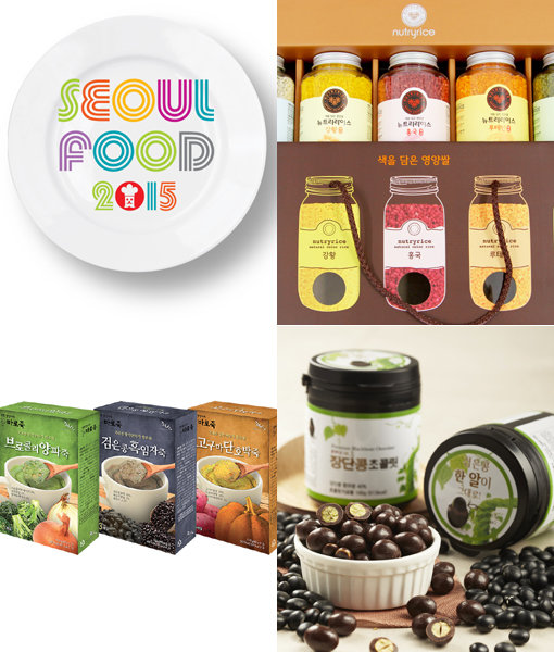 뉴트리라이스 ‘영양쌀’-DMZ드림푸드 ‘장단콩 초콜릿’-철수식품 ‘바로죽’(오른쪽 상단에서 시계방향으로)