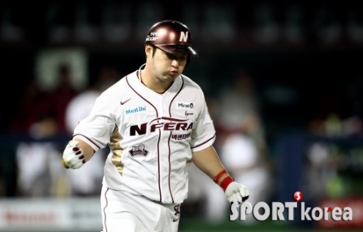 8일 오후 서울 목동야구장에서 열린 ‘2015 타이어뱅크 KBO 리그 프로야구’ 넥센 히어로즈 대 KIA 타이거즈 경기 9회말 넥센 선두타자 박병호가 끝내기 솔로홈런을 친 후 환호하고 있다.