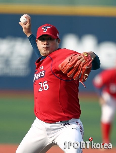 9일 오후 서울 목동야구장에서 열린 ‘2015 타이어뱅크 KBO 리그’ 넥센 히어로즈와 KIA 타이거즈의 경기 1회말에서 KIA 선발투수 서재응이 역투하고 있다.