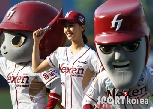 9일 오후 서울 목동야구장에서 열린 ‘2015 타이어뱅크 KBO 리그’ 넥센 히어로즈와 KIA 타이거즈의 경기에 앞서 피트니스 모델 이연이 시구를 마치고 퇴장하고 있다.