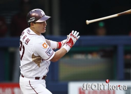 9일 오후 서울 목동야구장에서 열린 ‘2015 타이어뱅크 KBO 리그’ 넥센 히어로즈와 KIA 타이거즈의 경기 5회말 2사 1루에서 넥센 박동원이 1타점 적시타를 치고 있다.