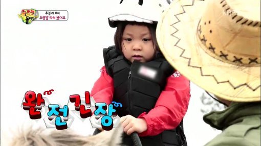 ‘슈퍼맨이 돌아왔다’ 추사랑이 제주도에서 홀로 말타기에 도전했다.