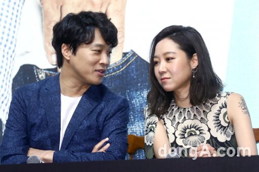 배우 차태현(왼쪽), 공효진이 11일 오후 서울시 강남구 더 라움에서 열린 KBS 새 금토드라마 ‘프로듀사’ 제작발표회에서 질의응답을 하고 있다.