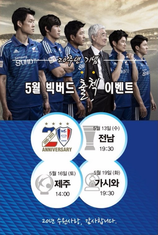 3경기의 출첵 도장을 완료하신 팬들을 대상으로 5/22에 추첨을 실시하여 당첨된 10명에게는 최근 품절 사태를 일으키며 최고의 인기를 모으고 있는 ‘초레어 아이템’ 블루윙즈 20주년 레트로 유니폼을 증정할 예정이다.
