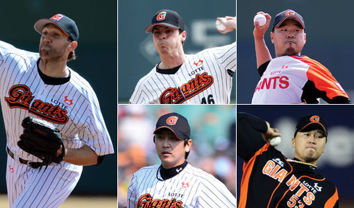 린드블럼-레일리-송승준-이상화-심수창(맨 왼쪽부터 시계방향). 사진|스포츠동아DB·스포츠코리아