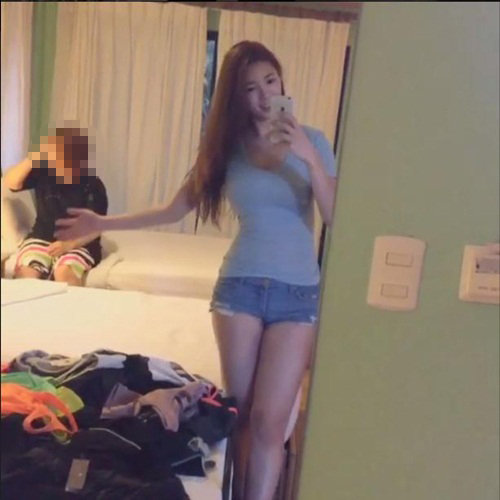 공개된 사진에는 핫팬츠 차림에 반팔 티셔츠를 입은 유승옥이 호텔 방 전신거울 앞에서 셀카를 찍는 모습이 담겨 있다.