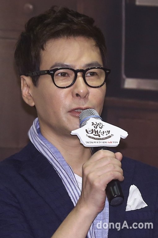 가수 윤상이 12일 오전 서울시 강남구 리츠칼튼호텔에서 열린 tvN ‘집밥 백선생’ 제작발표회에서 질의응답을 하고 있다.