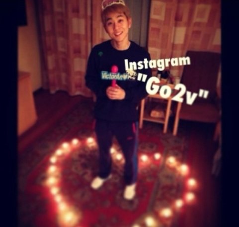 공개된 사진에서 안현수는 연인 우나리가 준비한 듯한 하트 모양 촛불 사이에서 행복한 표정을 짓고 있다.