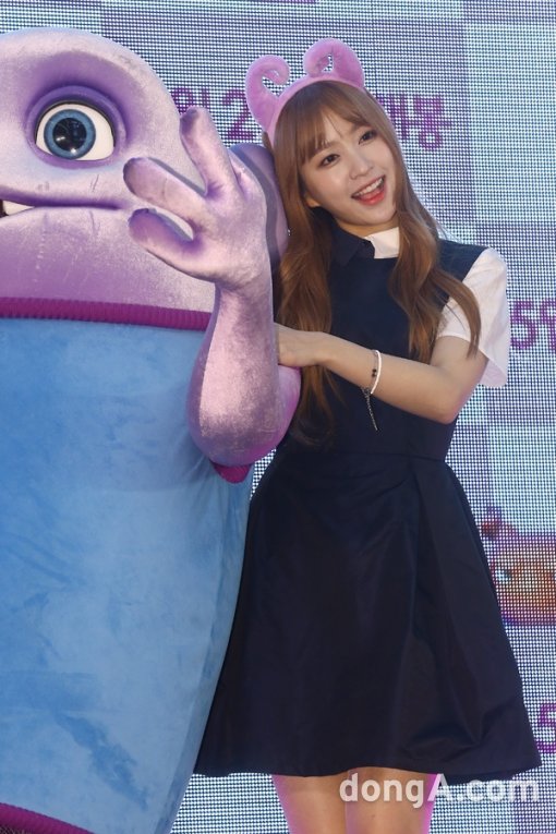 EXID 하니가 12일 오후 서울 영등포구 영등포동 타임스퀘어에서 진행된 애니메이션 '홈' 절친 라이브 쇼케이스에 참석해 포토타임을 하고 있다.