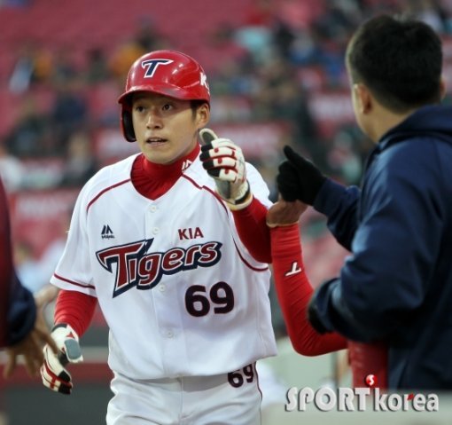 12일 오후 광주-기아 챔피언스필드 ‘2015 타이어뱅크 KBO 리그 프로야구’ KIA 타이거즈와 kt 위즈의 경기 KIA 2회말 2사 만루에서 2번 강한울의 중전 적시타 때 2루주자 이은총이 득점을 올리고 덕아웃에서 동료선수들의 축하를 받고 있다.