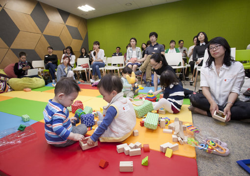특히, 강의실에는 아기들이 기어 다니며 놀 수 있는 푹신한 매트와 장난감이 제공돼 보육 시설에 맡기기 어려운 18개월 미만의 아기들과 함께할 수 있다.