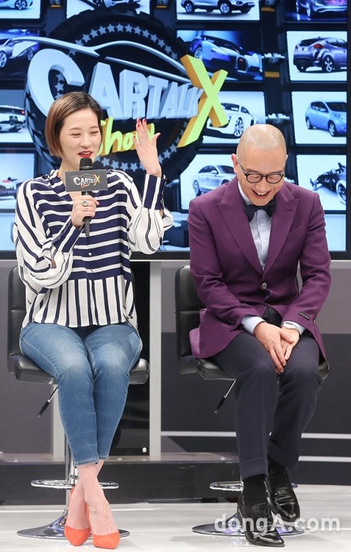 이영진(왼쪽)과 남궁연이 13일 오후 서울 마포구 동아디지털미디어센터 대형스튜디오에서 열린 채널A '카톡쇼X’ 론칭 방송 기념 기자간담회에 참석해 인사말을 하고 있다.