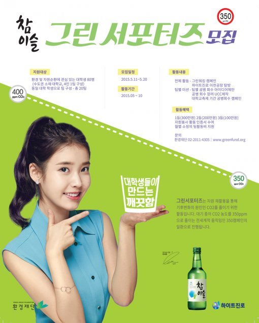 하이트진로(대표 김인규)의 소주 브랜드 참이슬이 환경재단(이사장 이세중, 대표 최열)과 함께 환경 활동에 관심이 많은 수도권 소재 대학생 20팀 80명을 모집해 ‘참이슬 그린 서포터즈’를 운영한다고 밝혔다.