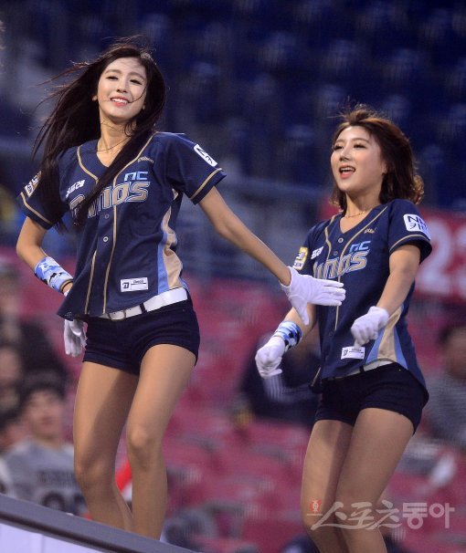 13일 서울 잠실야구장에서 ‘2015 타이어뱅크 KBO 리그’ LG트윈스와 NC다이노스 경기가 열렸다. NC 치어리더가 흥겨운 춤을 추며 공연을 하고 있다.