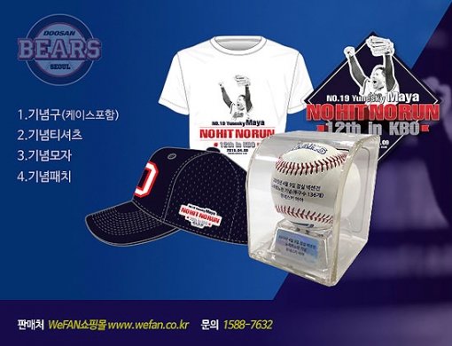 프로야구 두산베어스가 14일(목) 외국인 투수 유네스키 마야의 노히트 노런 기념 상품을 출시했다.