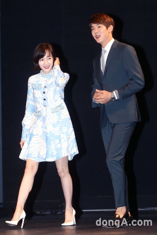 배우 임수정(왼쪽), 유연석이 14일 오전 서울시 강남구 압구정CGV에서 열린 영화 ‘은밀한 유혹’ 제작보고회에 참석하고 있다.