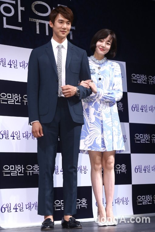 배우 유연석(왼쪽), 임수정이14일 오전 서울시 강남구 압구정CGV에서 열린 영화 ‘은밀한 유혹’ 제작보고회에서 포토타임을 하고 있다.