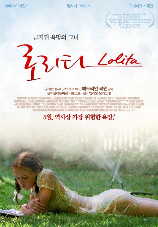 이를 영화화한 ‘로리타’는 ‘위험한 정사’와 ‘나인 하프 위크’ 등 감각적인 성애영화로 명성이 높은 영국 출신 애드리안 감독과 배우 제레미 아이언스가 만나 제작됐다. 애드리안 라인감독 특유의 감각적인 영상미가 돋보이는 작품으로 적나라한 정사 장면은 나오지 않지만 두 사람의 정사를 암시하는 장면이 몇 군데 등장한다. 이로써 관객들의 상상력을 부추기며 더욱 관능적인 분위기를 연출했다.
