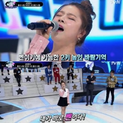 가수 벤이 ‘너의 목소리가 보여’에서 선배 가수 나얼의 ‘바람기억’을 두 키 높여 열창했다.