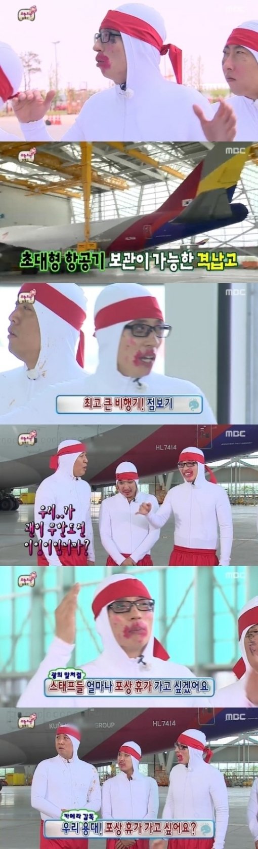 세계 최대 여객기인 A380은 길이 75미터, 높이 24미터, 무게만 245톤의 거대한 규모다. 유재석은 “광희가 무한도전 새 멤버로서 처음으로 하는 미션이다. 이 미션을 잘 수행하면 제작진 모두와 함께 포상휴가를 갈 수 있다”고 격려했다.