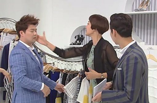 당시 입었던 비슷한 검정색 자켓 시스루룩을 즉석에서 입은 변정수가 “그때 그 옷은 가슴쪽에 주머니가 있었고 상의는 모두 탈의하고 자켓만 입었었다”는 설명을 이어가던 중 갑자기 “어디봐요~ 지금!” 버럭 소리를 지르며 장난스레 전현무의 뺨을 때리는 돌발 상황이 벌여져 촬영장을 초토화 시킨 것.