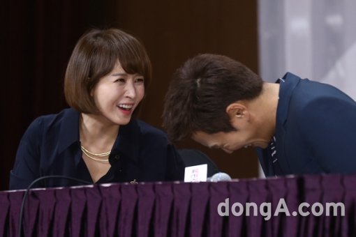 배우 김선아(왼쪽), 주상욱이 18일 오후 서울시 영등포구 63컨벤션센터에서 열린 KBS 새 수목드라마 ‘복면검사’ 제작발표회에서 기자간담회를 하고 있다.