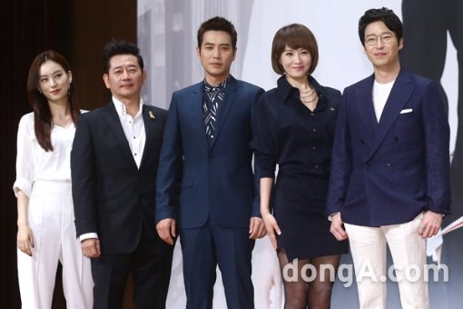 배우 황선희(왼쪽부터), 전광렬, 주상욱, 김선아, 엄기준이 18일 오후 서울시 영등포구 63컨벤션센터에서 열린 KBS 새 수목드라마 ‘복면검사’ 제작발표회에서 포토타임을 하고 있다.