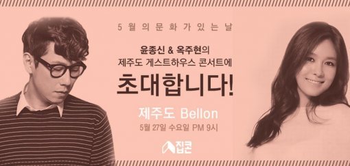 윤종신은 27일 오후 9시 ‘제주도의 집, 여행자의 집’이란 주제로 열리는 5월 '집콘' 무대에 가수 겸 뮤지컬배우 옥주현과 함께 선다.