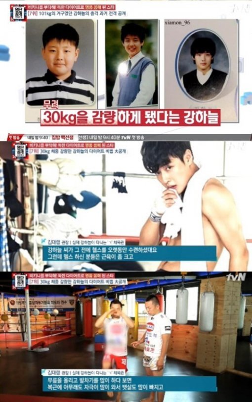 그러던 어느 날 강하늘은 학교에서 도시락을 먹으려는 순간 ‘살찌니까 내가 대신 먹어준다’라는 친구의 쪽지를 보고 충격을 받아 다이어트를 결심했다. 결국 그는 30kg을 감량해 현재의 ‘훈남’으로 거듭나게 됐다.