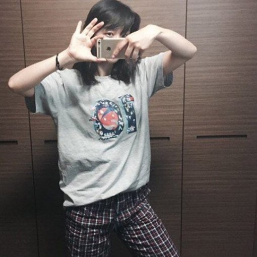 사진 속 한유라는 ‘무한도전 10주년’을 상징하는 로고의 티셔츠를 입고 포즈를 취하고 있다. 한유라는 “사실은 내 것 아님. 많이 큼. 티셔츠 예쁘다”라고 덧붙여 정형돈의 티셔츠임을 밝혔다.