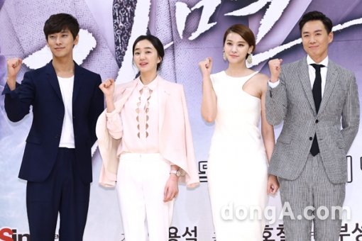 배우 주지훈(왼쪽부터), 수애, 유인영, 연정훈이 19일 오후 서울 양천구 SBS 사옥에서 열린 새 수목드라마 ‘가면’ 제작발표회에 참석해 포토타임을 하고 있다.