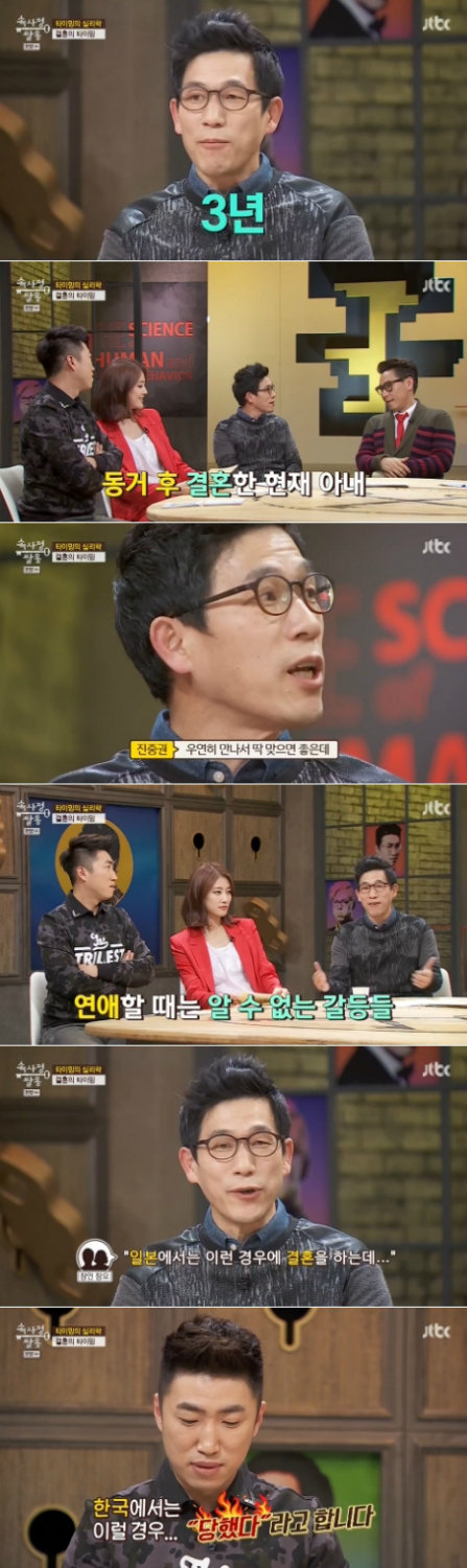 이어 진중권은 “우연히 만나서 잘 맞으면 좋은데 막상 같이 살아보면 다른 점이 정말 많다”며 “부모님도 동거를 하는 걸 알았다. 장인 장모는 ‘일본에선 보통 이런 경우 결혼을 하는데 한국에선 어떤지 모르겠다’는 팩스가 왔었다”고 말했다.