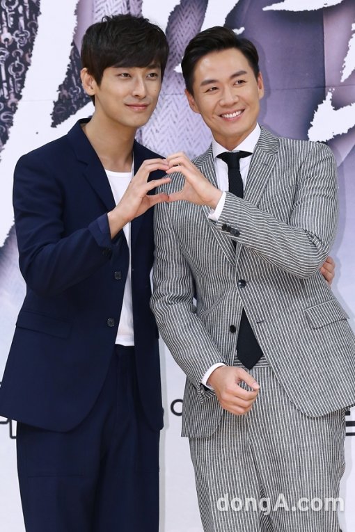 배우 주지훈(왼쪽), 연정훈이 19일 오후 서울 양천구 SBS 사옥에서 열린 새 수목드라마 ‘가면’ 제작발표회에 참석해 포토타임을 하고 있다.