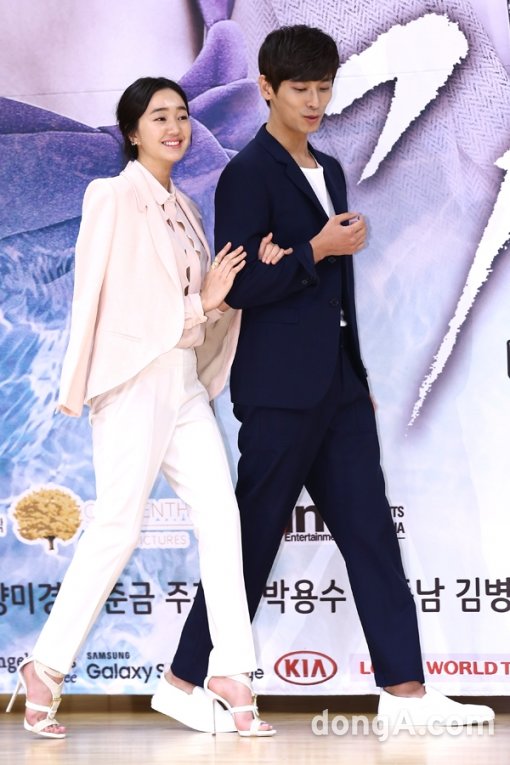 배우 수애(왼쪽), 주지훈이 19일 오후 서울 양천구 SBS 사옥에서 열린 새 수목드라마 ‘가면’ 제작발표회에 참석해 포토타임을 하고 있다.