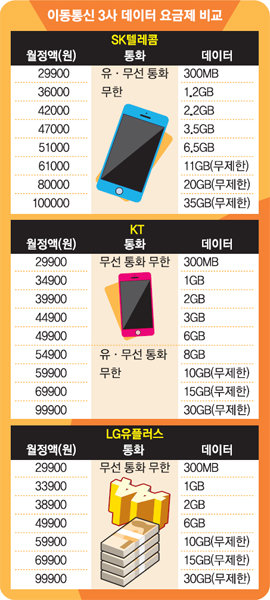 KT와 LG유플러스에 이어 SK텔레콤까지 합류하면서 ‘데이터 요금제’가 완성됐다.